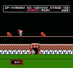 Circus Charlie es un juego de plataformas en donde el jugador debe guiar a la estrella circense Circus Charlie a través